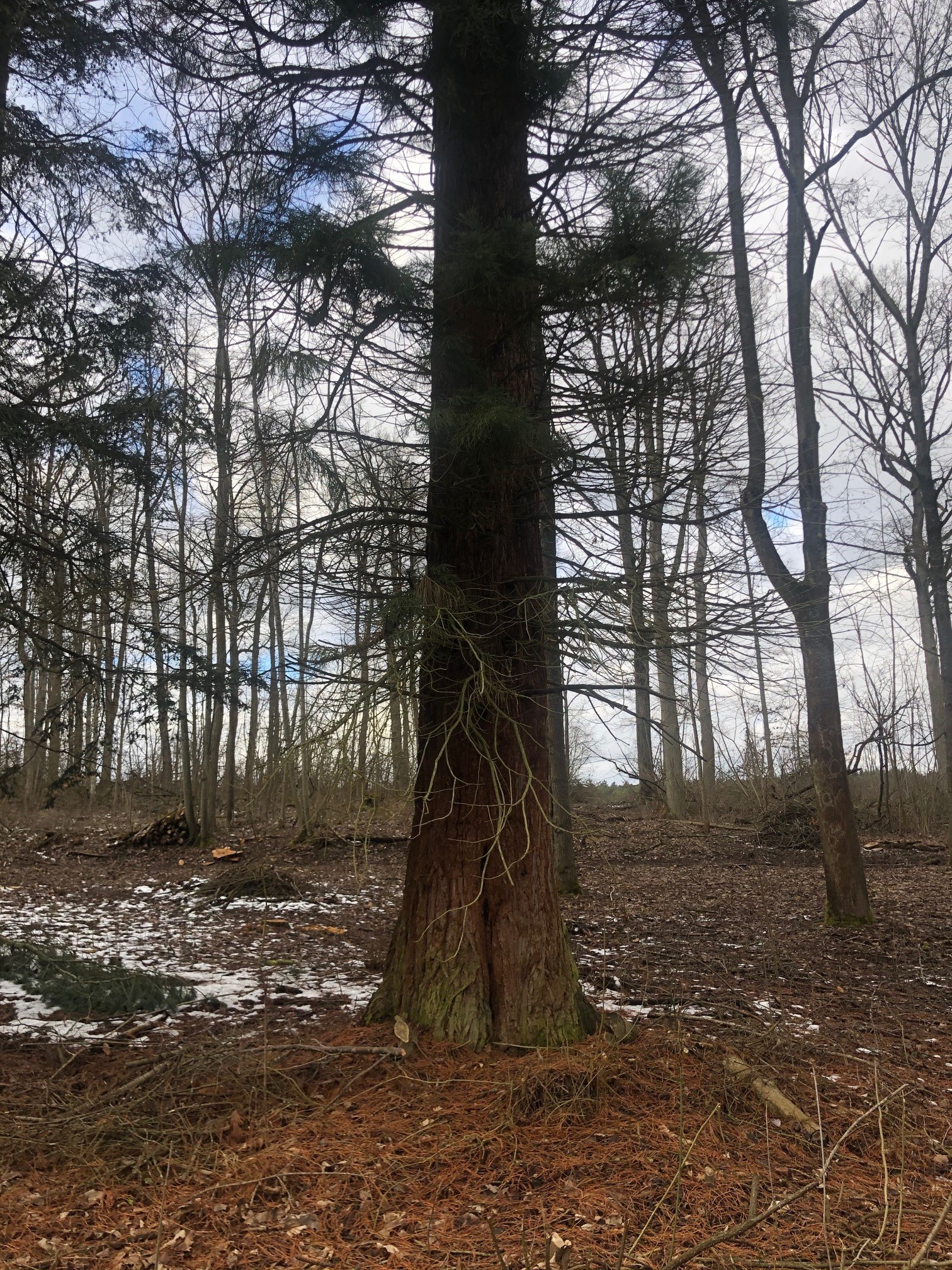 Der Mammutbaum (Sequoiadendron giganteum), auch Berg-Mammutbaum oder Wellingtonie genannt, wurde 1984 gepflanzt und gehört zu den ganz jungen seiner Art.