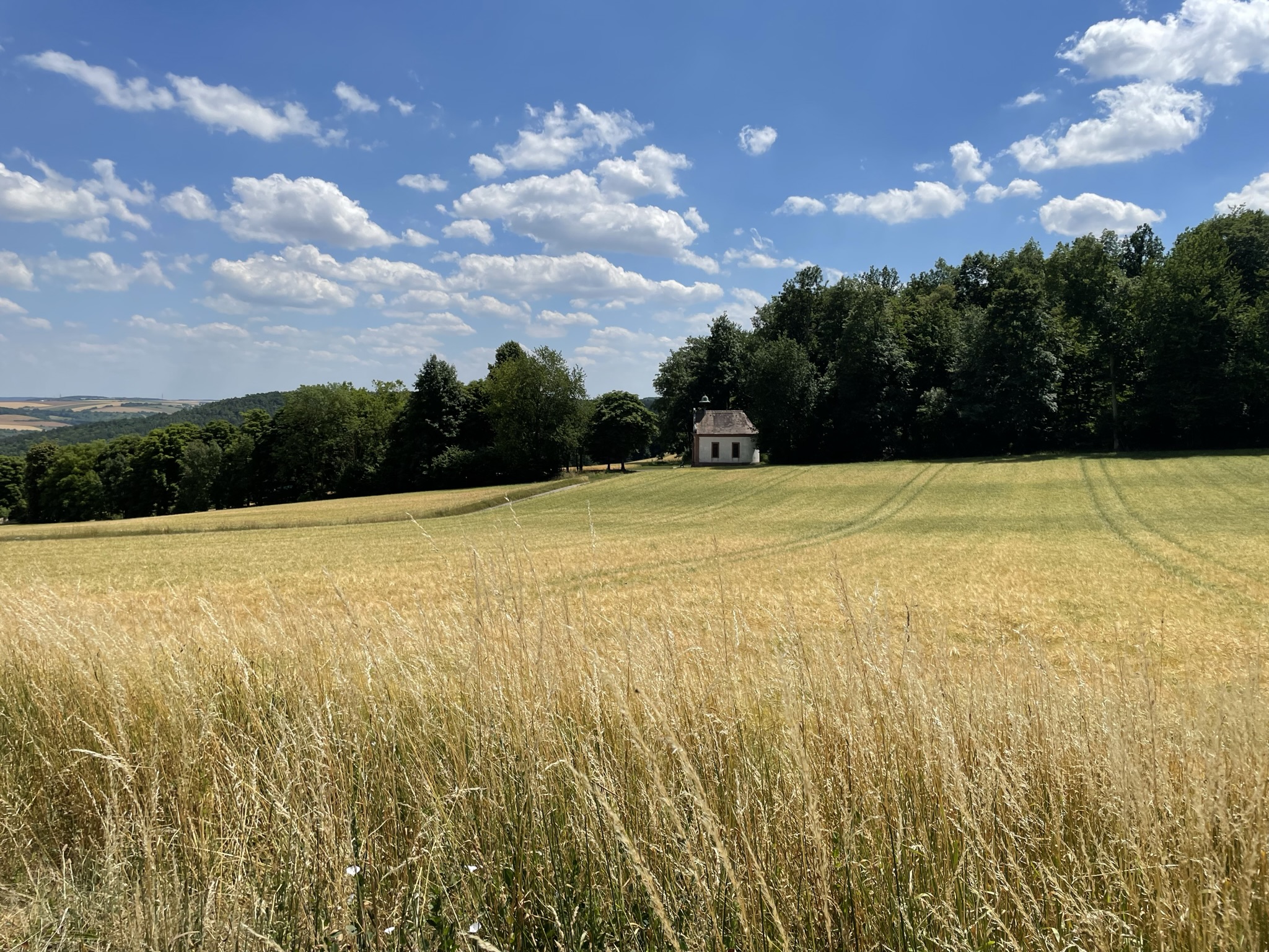 Der Weg zum Fuhrmannsloch ist nur für Fußgänger begehbar und führt über die rote Route. Denn nach der Station T8 (Waldrand) verändert sich der Waldweg in einen klassischen schmalen Feldweg, auf dem Sie durch die Felder zur Stammbergkapelle und schließlich zur Station T9 (Forstwirtschaft) gelangen.